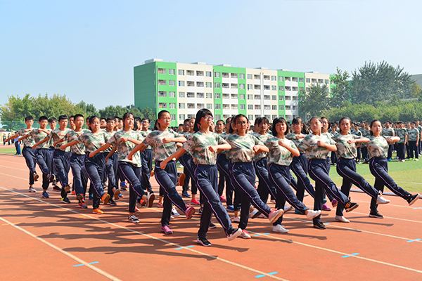 9月12日上午,我校2017级高一新生结束了为期12天的军训,在运动场举行了隆重的阅兵式。阅兵式由学生成长中心王博主任主持,县武装部政委包艳伦,承训部队首长,县教育局办公室副主任刘庆和,学校副校长刘欣、孟维杰,高一年级主任冯建会在主席台就坐,和前来观看阅兵的高一学生家长一起检阅军训成果。