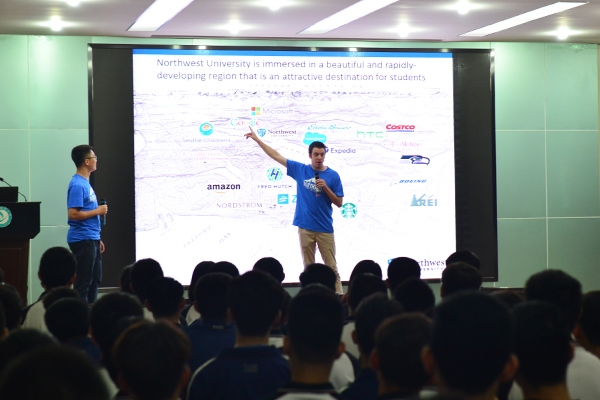 访问团到校后,参观了校园,在怡心轩举行了座谈会,座谈会上,张申校长表达了对远道而来的客人的热忱欢迎,双方在国际合作方面进行了深入的交流,并互赠礼物合影留念。访问期间,美国西北大学国际学生处主任Mrs.Li Lowry和专员Nick在怡心轩二楼为我校师生作了一场精彩的报告,让大家对美国的教育理念、教育环境和美国西北大学有了一个全面的了解,同时,也为同学们下一步出国深造奠定了基础。
