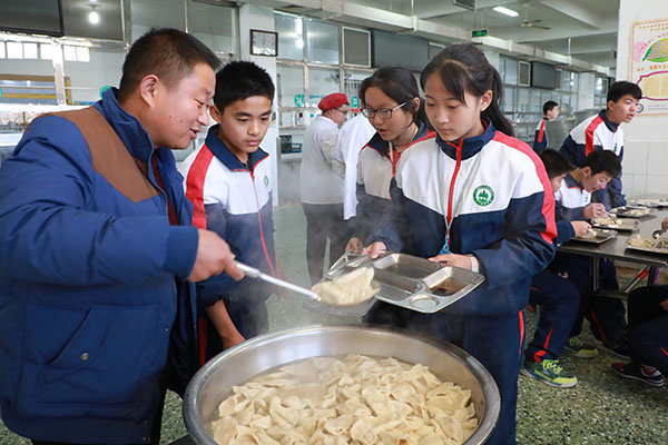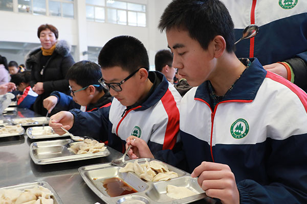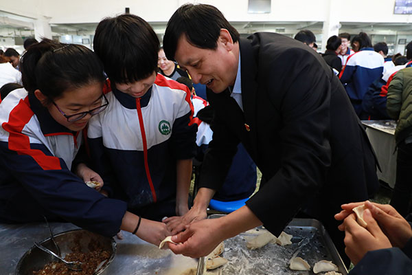 张校长与孩子们一起包水饺