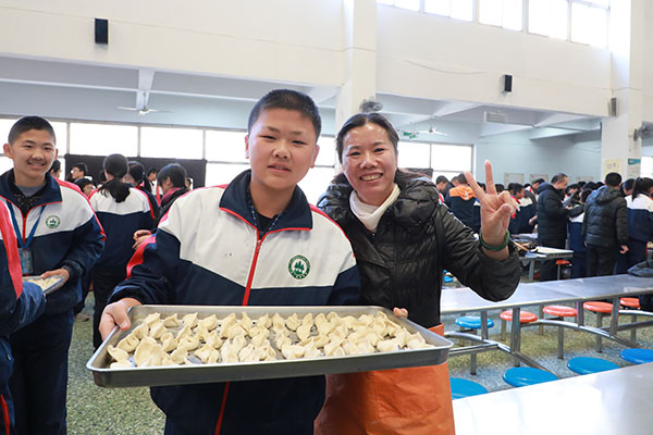 为弘扬中华传统文化,丰富师生的校园生活,打造和谐、温馨的家庭式亲情关系。12月21日上午,我校初一年级组织全体师生与家长在思源餐厅一楼开展“迎冬至,包水饺”实践活动。