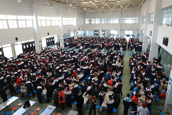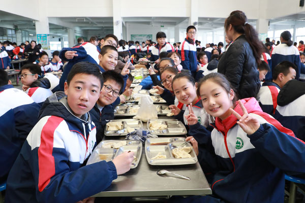 冬日严寒,却不能阻挡大家包饺子的热情,现场处处洋溢着师生们灿烂的笑容。在活动开始前,张申校长作了动员讲话,他诠释了冬至的含义,希望同学们在包水饺的过程中,体验包水饺的乐趣,享受二中大家庭的温暖,感受中华传统文化的魅力。随后,初中部滕玉香主任对本次实践活动进行了强调和安排。为组织好这次活动,学校食堂员工一大早就开始准备饺子面和饺子馅,给老师和同学们准备锅碗瓢盆等包饺子用具。同学们在各班级导师和家长帮助下,分小组进行了包水饺体验,大家都不甘示弱,分工合作,有的和面、有的擀饺子皮、有的包饺子……忙的不亦乐乎。学生们的饺子又可谓创意十足,彰显着青春的活力与个性。虽然包出来的饺子形状各异,但个个都包尽了“温暖”和“祝福”。大家其乐融融,在这样的温馨的环境中,每个人都显得无比高兴,脸上都洋溢着灿烂的微笑。人多力量大,没一会儿功夫热气腾腾的饺子就上桌了,品尝着热乎乎的饺子,交流着传统文化习俗,感受到了浓浓情意和生活的美好。