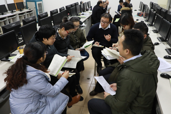 学习活动分别以年级、中心为单位进行组织,分为两个阶段,首先对“七个标准”和工作标准文本进行研读,老师们不断在学习材料上进行圈点勾画,并将自己的思考在学习材料上做好标注。然后,以学科为单位,老师们分组进行交流,每位老师针对材料的学习交流自己的思考与收获;在交流分享过程中,老师们积极发言,不断碰撞思想,营造出了浓厚的研究学习氛围。