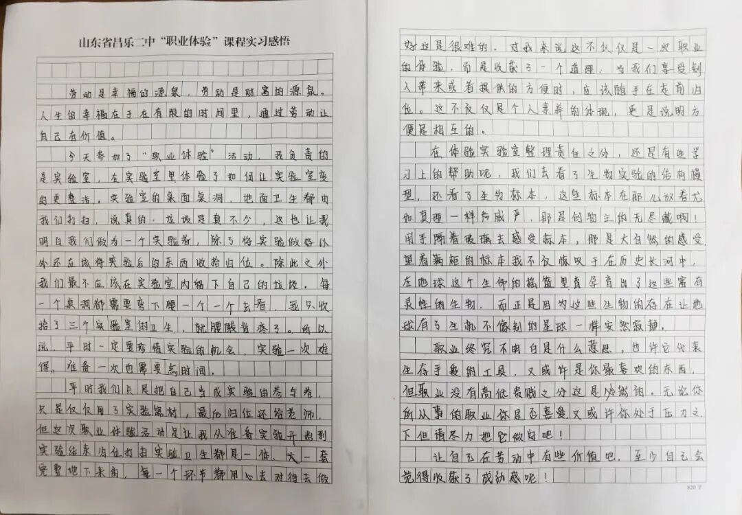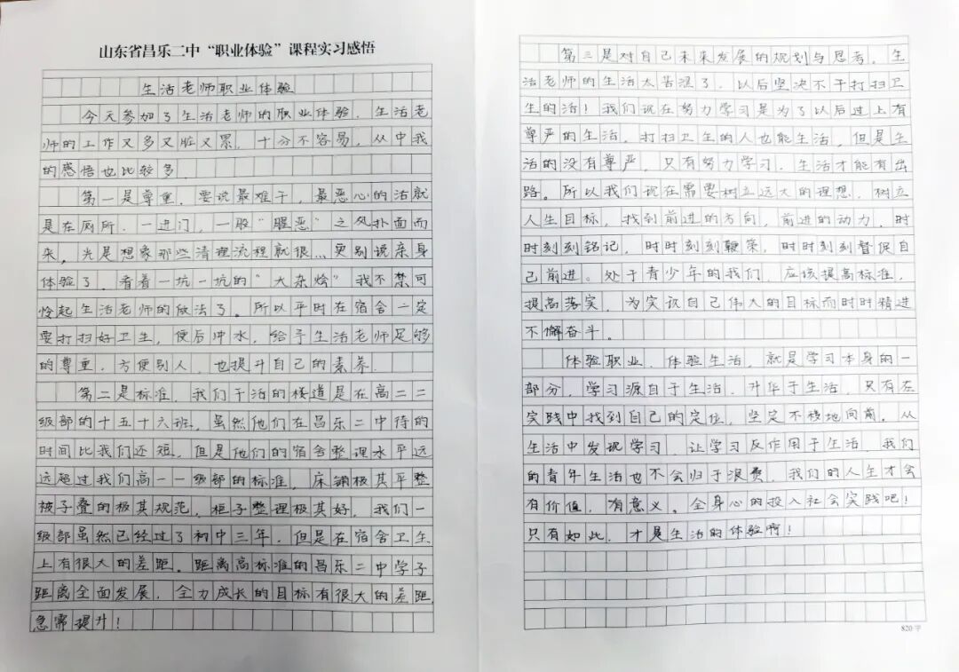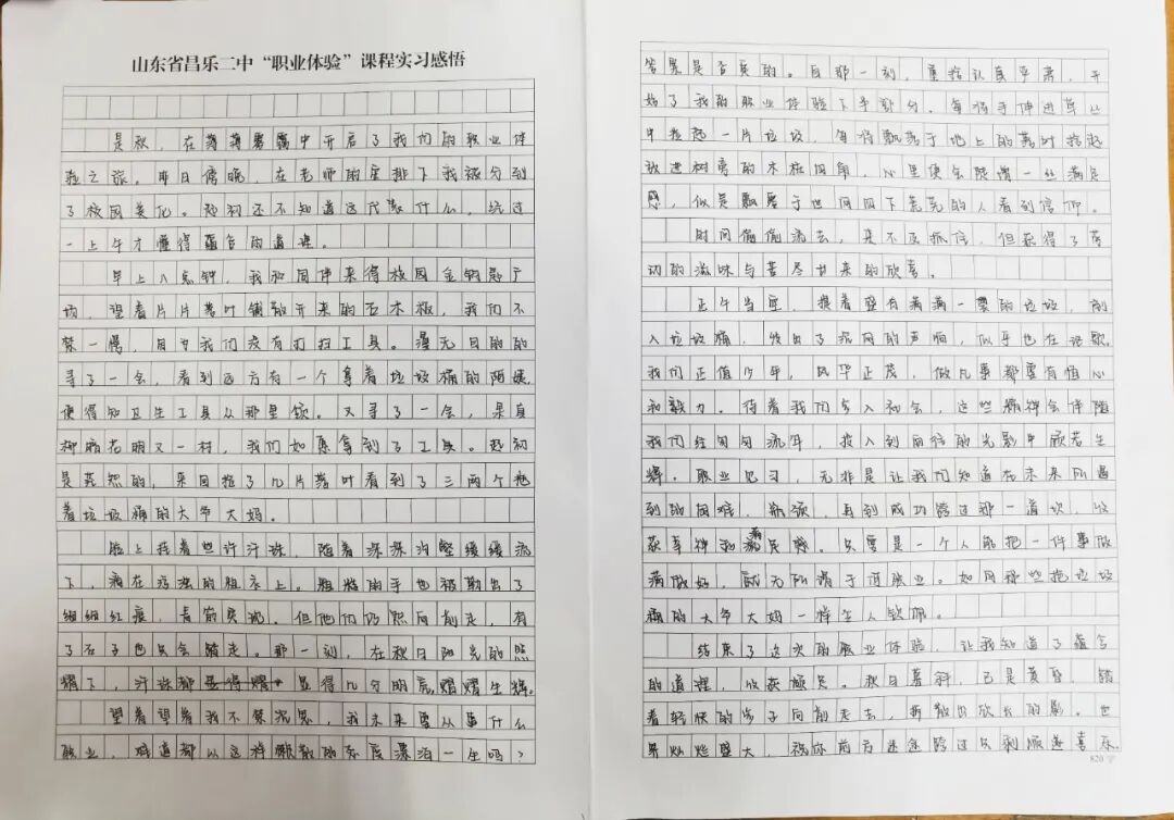 课程结束后,每一位同学都要分享交流,撰写参加职业体验心得感悟,生成自己的理解认识。经过实践,同学们不仅了解了所体验岗位的职责、标准和意义,掌握了岗位实践的技术和方法,更重要的是深刻感受到每一份职业的艰辛与不易,在真实的实践活动中获得了积极的体验和丰富的经验。